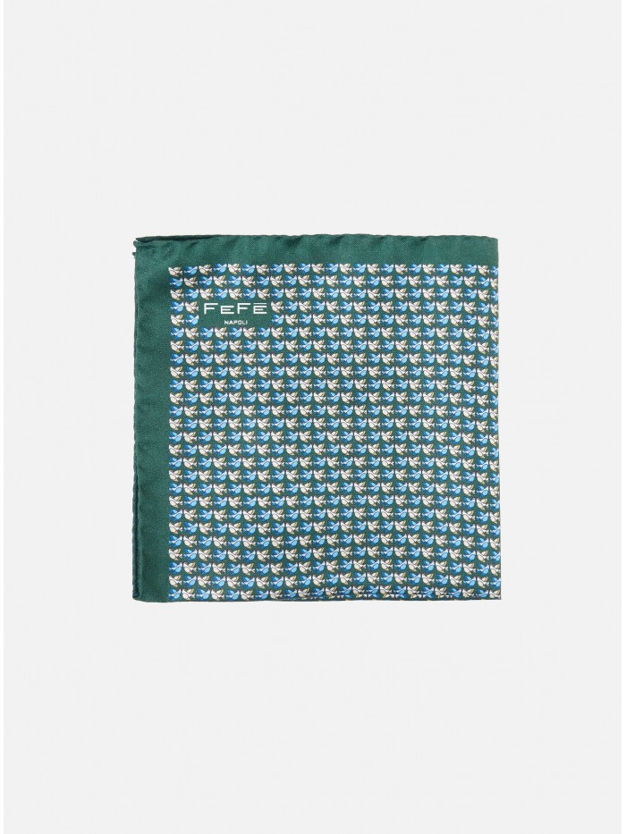 GREEN BIRDS SILK OPTICAL POCKET SQUARE